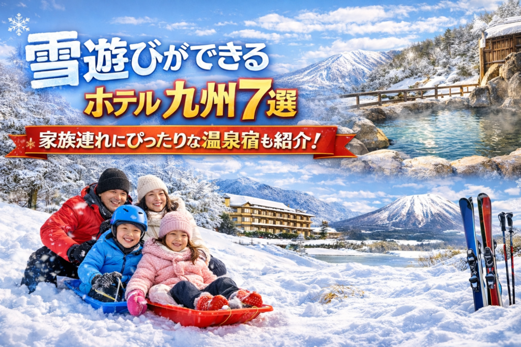 まずは「雪遊びができる ホテル 九州 家族連れ」というテーマで、冬の雪遊びを楽しめるおすすめホテル7軒を一覧でチェックしましょう。