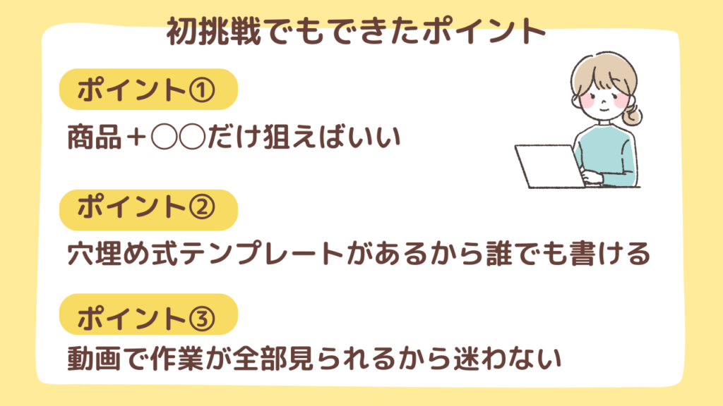 「この通りに書けば大丈夫」と思えることは、初心者にとって本当に心強かったです。